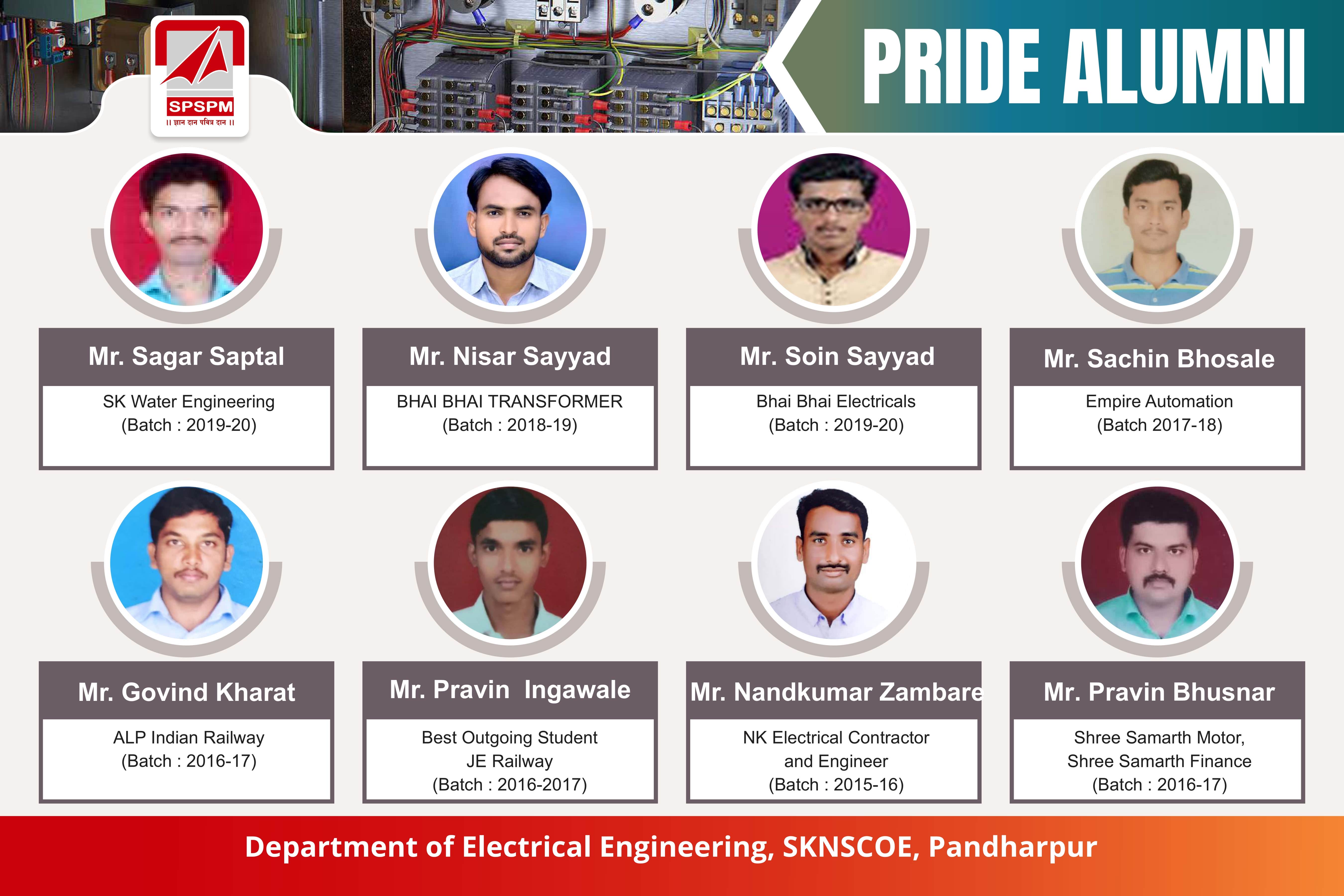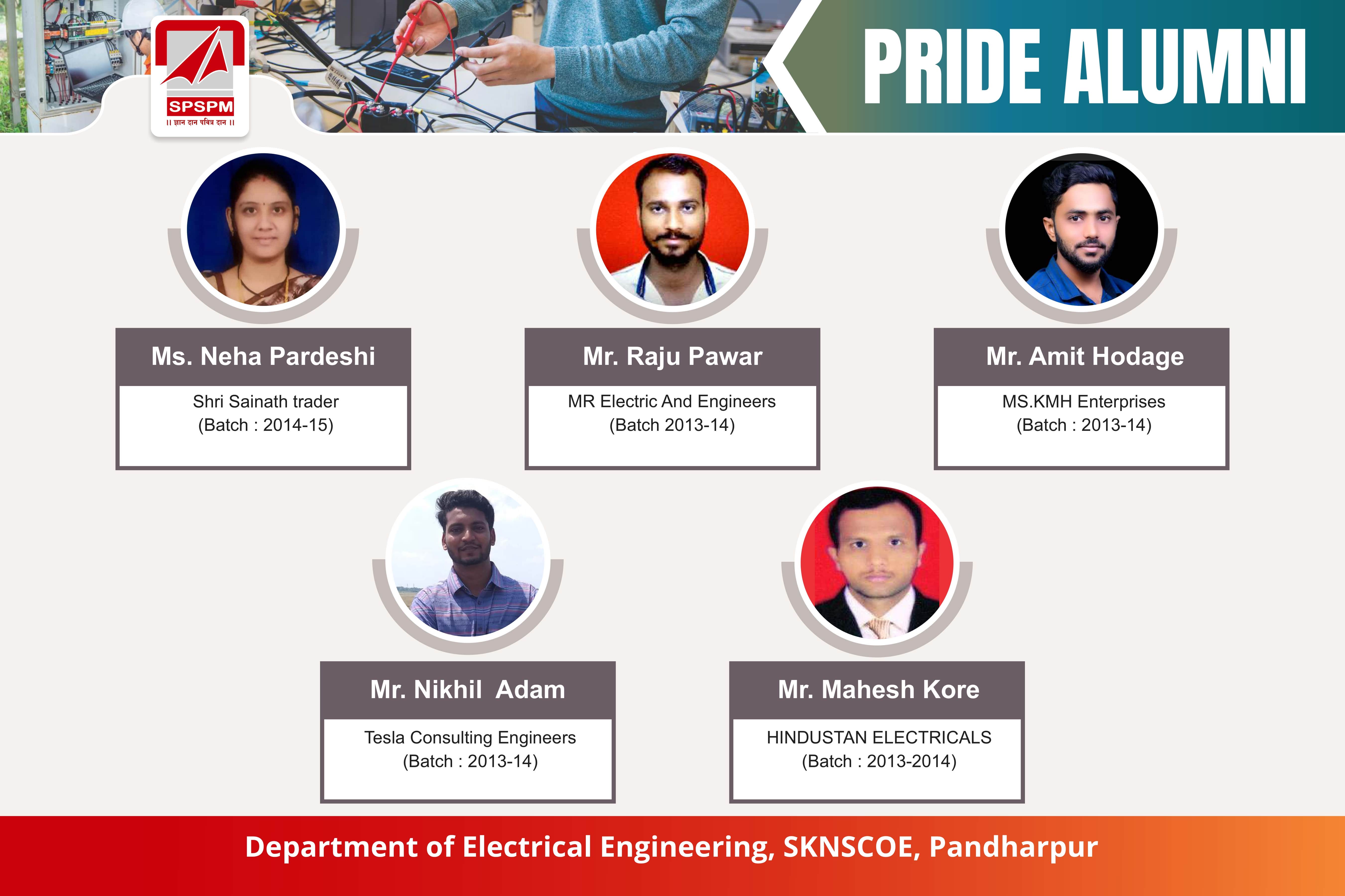The Department of Electrical Engineering, at SKN Sinhgad College of Engineering Established in the year 2010. The department offers a B. Tech degree in Electrical Engineering (UG Course) with an Honors Degree in Electrical Vehicle.