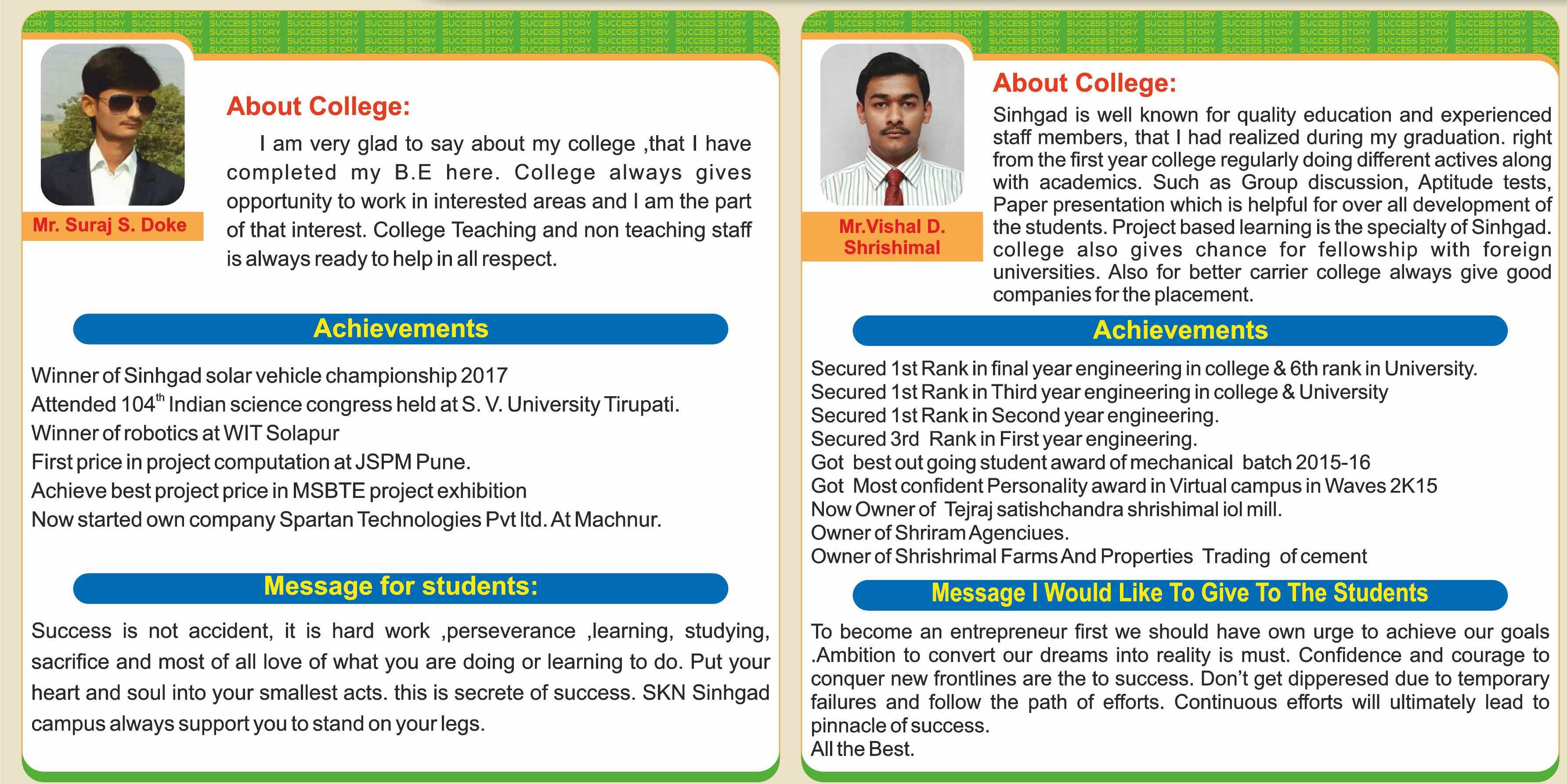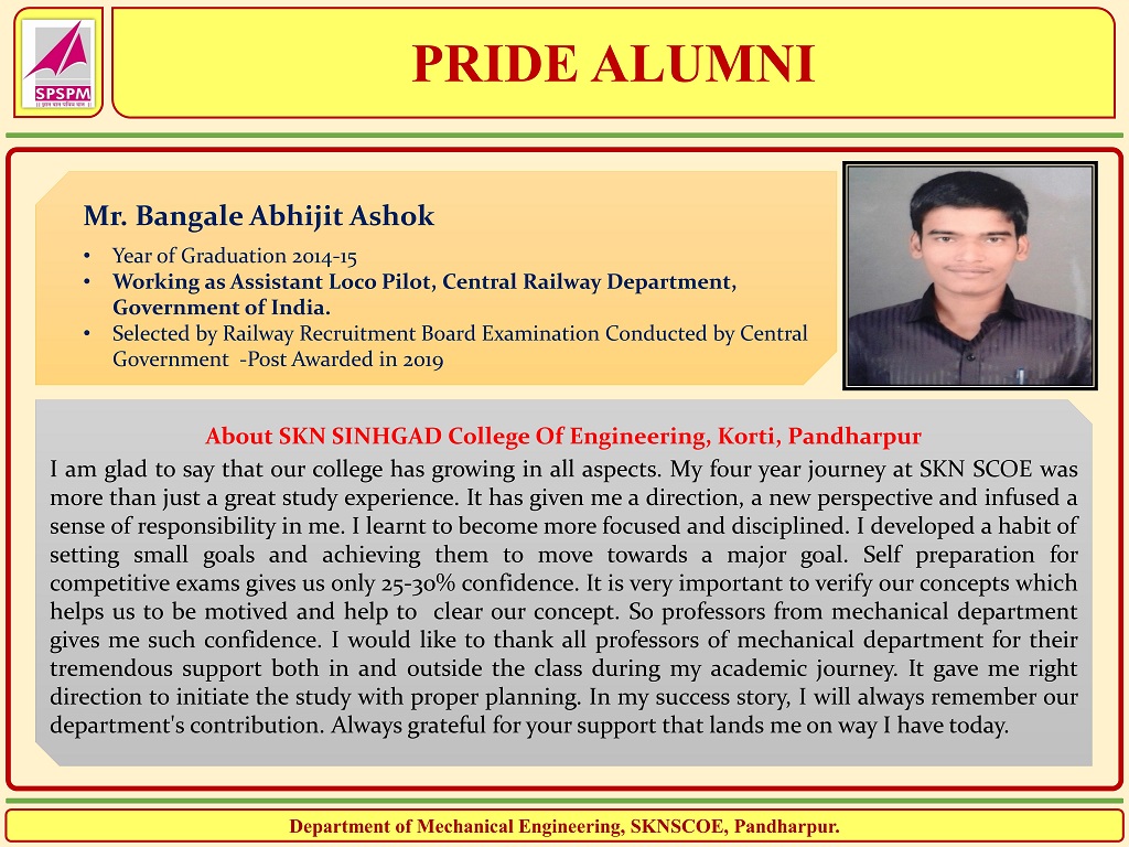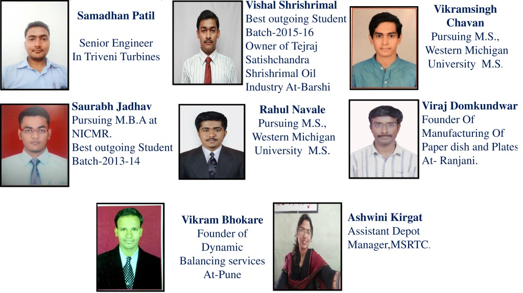 are pursuing higher education at renowned institutions both in India and abroad. The Mechanical Engineering
