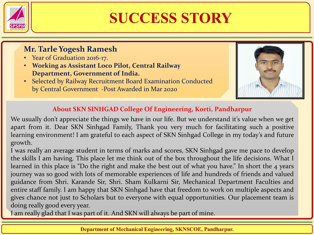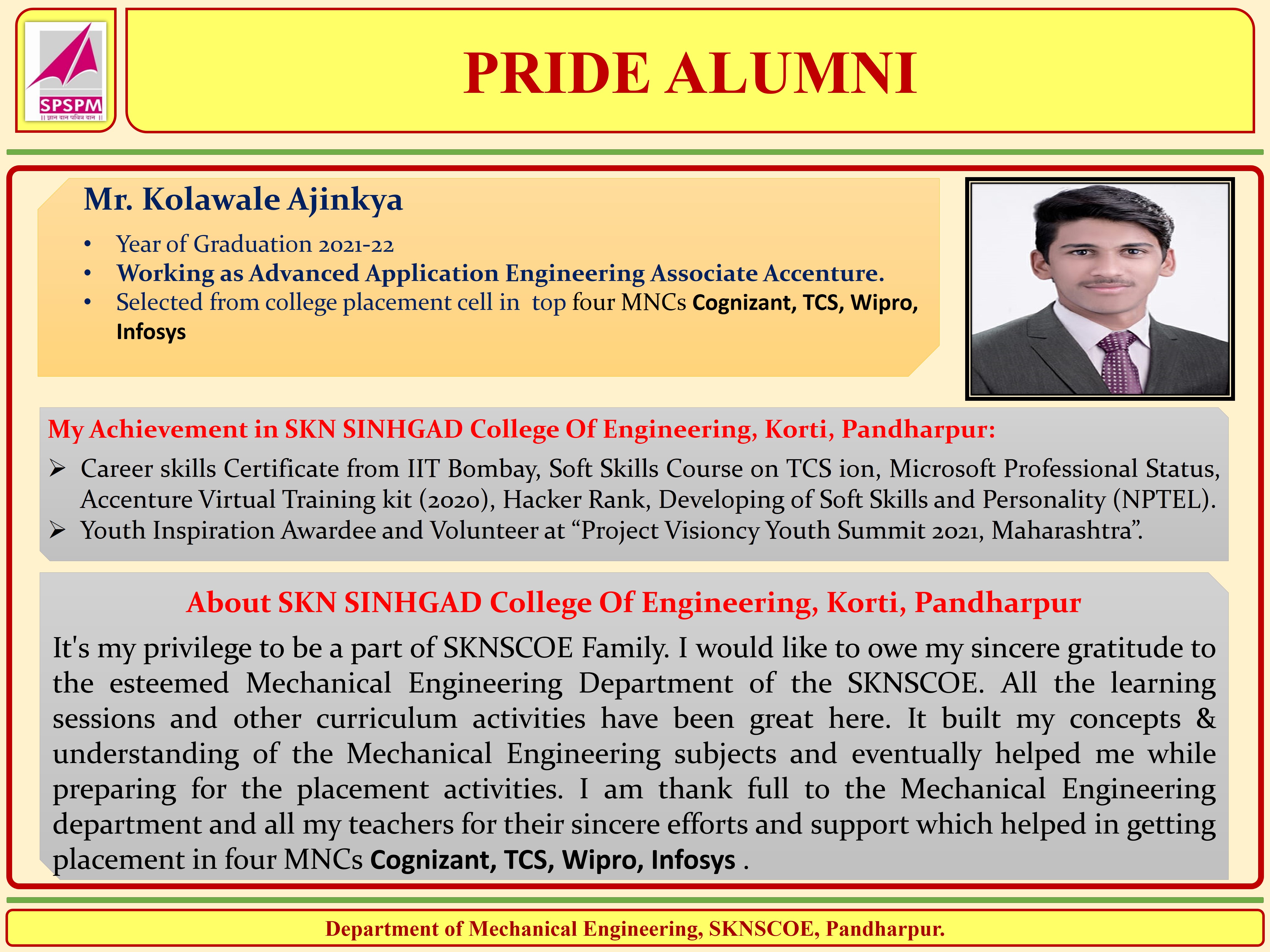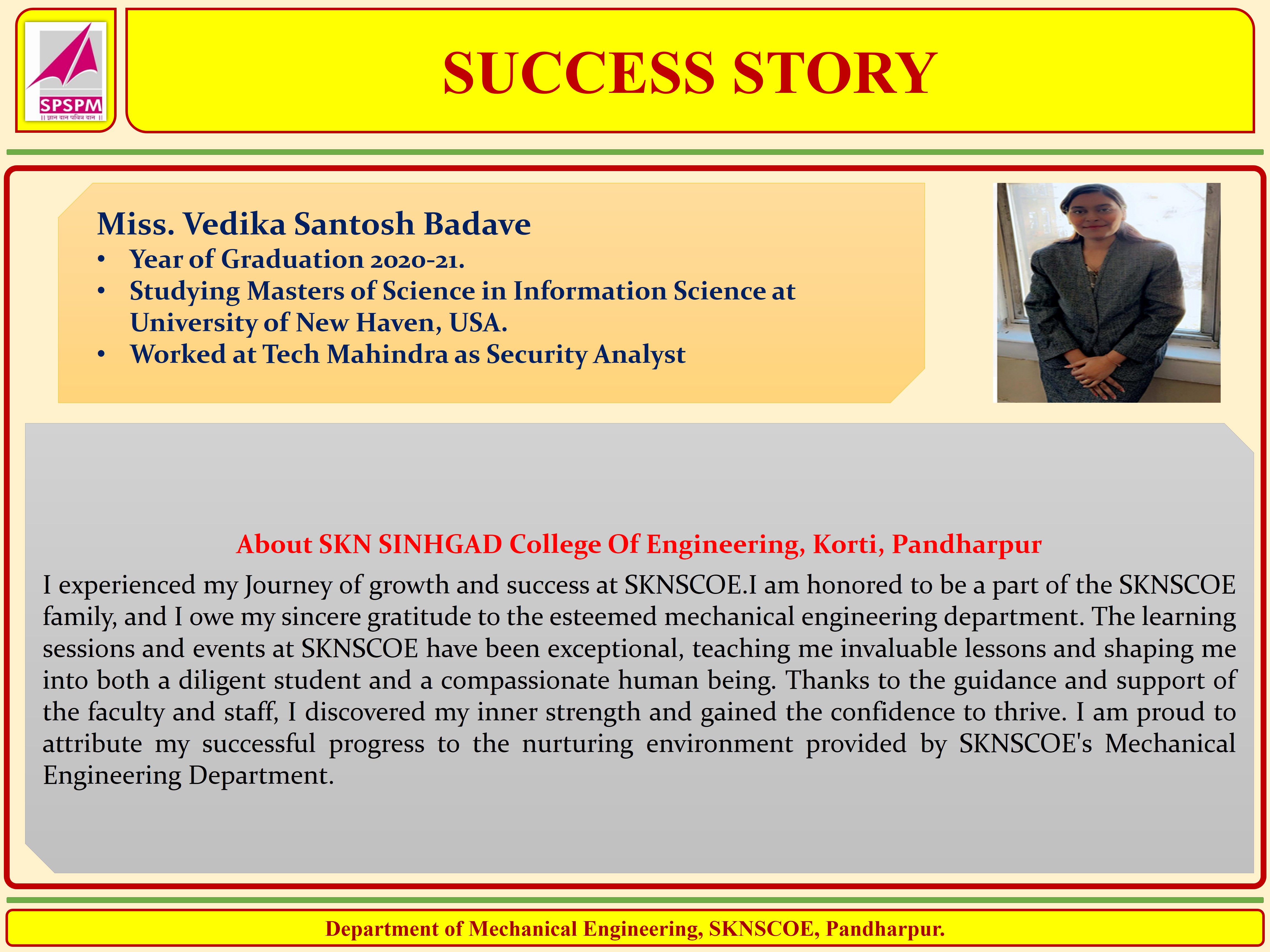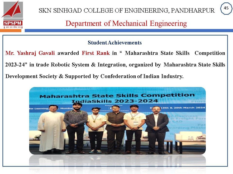 emerging technologies and professional skills. The Mechanical Engineering Department at SKNCOE offers