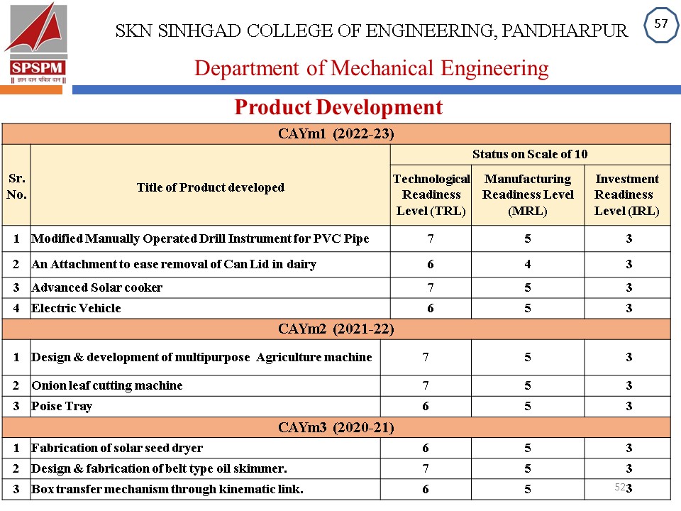 | 3 | Design And Fabrication Of Belt Type Oil Skimmer | Product Based | 2022-23 |